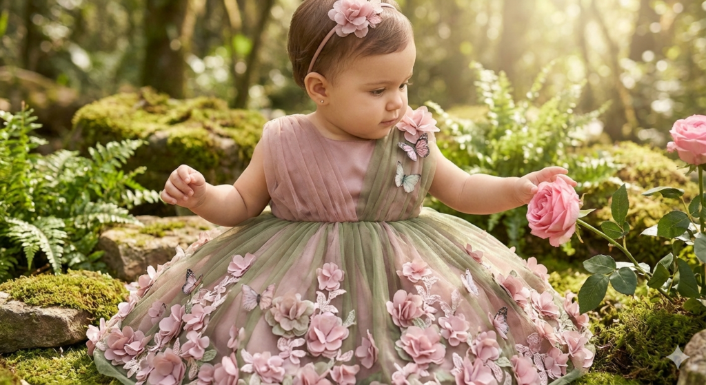Mas como traduzir um jardim inteiro em um pequeno vestido de festa? No Vestido Temático de hoje, vamos explorar como a natureza se transforma em alta costura para bebês, criando peças que parecem ter sido tecidas por fadas.